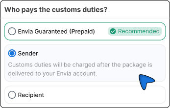 At Envia.com you can choose how and when customs charges are paid on international shipments.