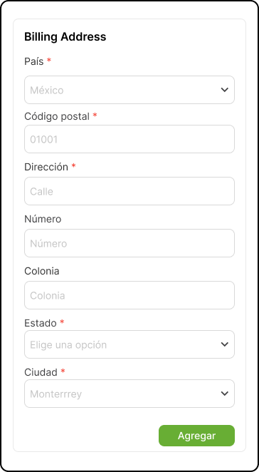 4. Cliquez sur Ajouter des données de facturation + et remplissez les champs demandés :