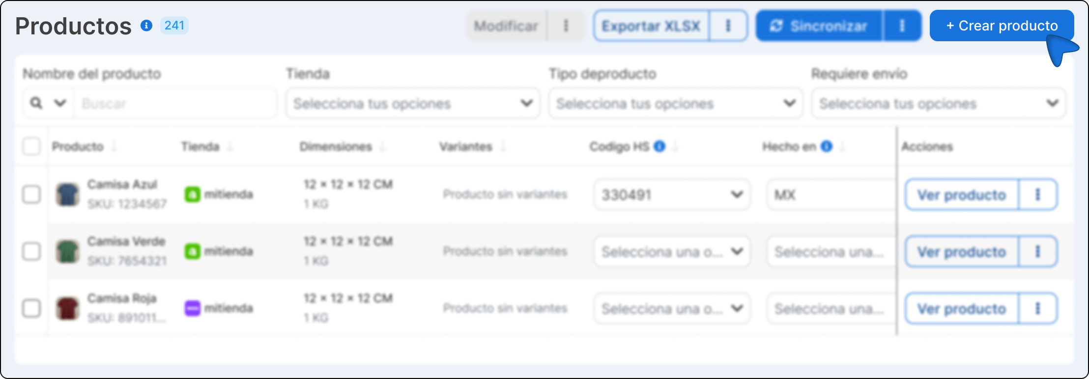 Agregar tus productos te permite registrar la información necesaria para crear envíos de forma más rápida y precisa. Al tener tus productos creados previamente, podrás reutilizarlos al momento de generar envíos nacionales o internacionales, evitando capturar la misma información en cada operación.