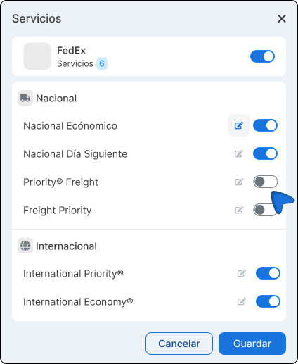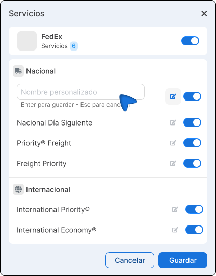Además de activar el cotizador automático, puedes personalizar qué servicios de paquetería se muestran en el checkout y cómo los ve tu cliente final. Esta opción te permite ofrecer una experiencia de compra más clara, alineada a tu operación y a la forma en que deseas presentar tus envíos.