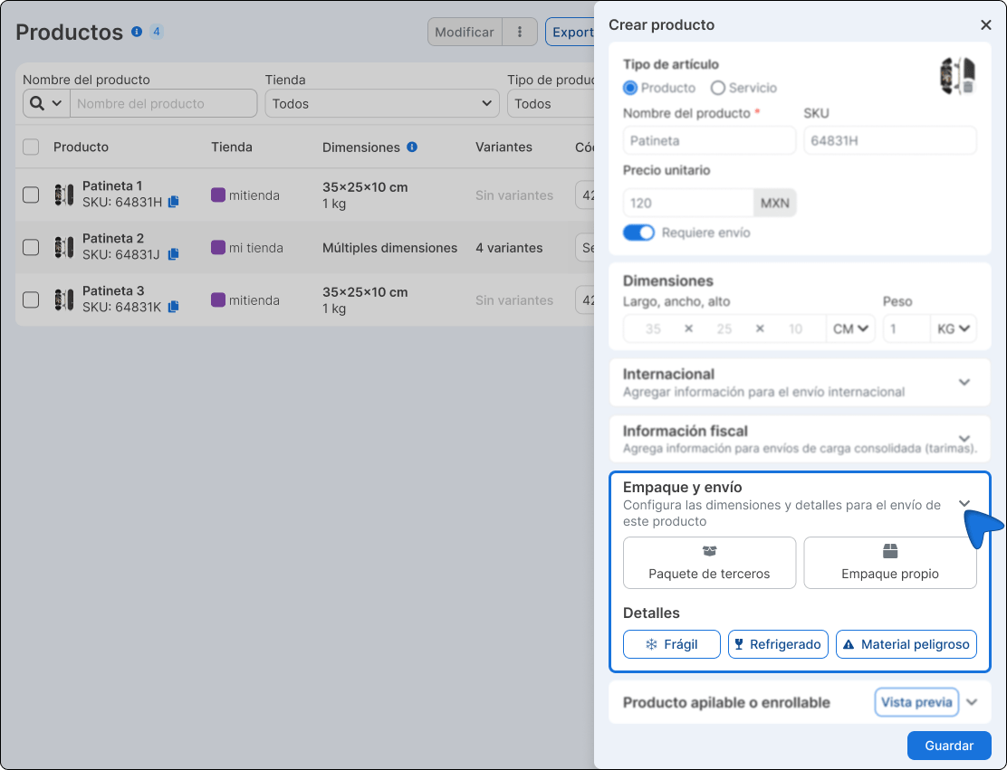 Quando si gestiscono più prodotti, è importante che ogni prodotto sia collegato al pacchetto corretto, in modo che le spedizioni vengano prezzate ed elaborate con precisione. Con la configurazione di Imballaggio e spedizione, Se desiderate acquistare in una scatola standard, potete definire esattamente il tipo di scatola in cui viaggerà ogni prodotto, sia in un imballaggio standard che in una scatola propria.