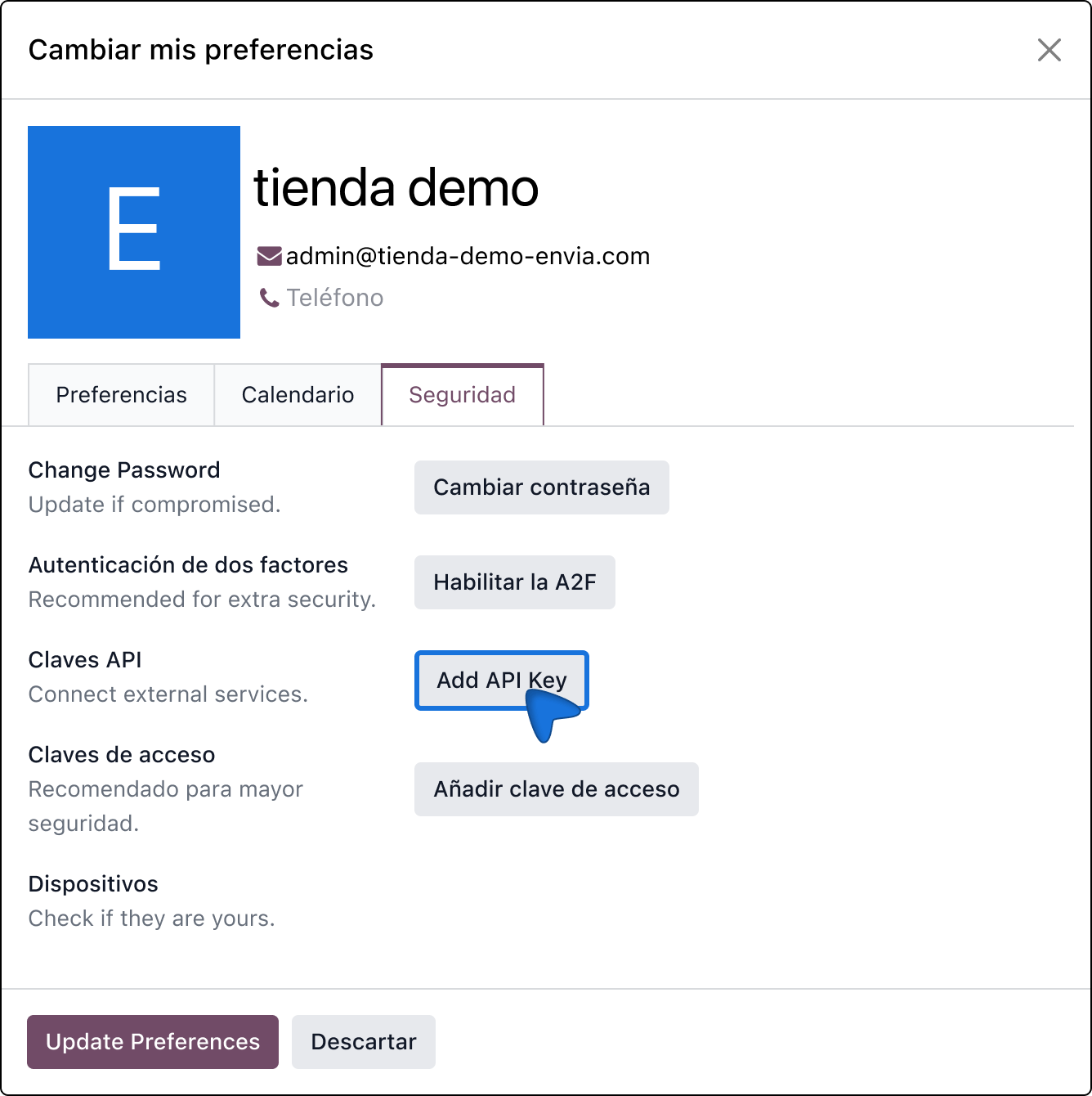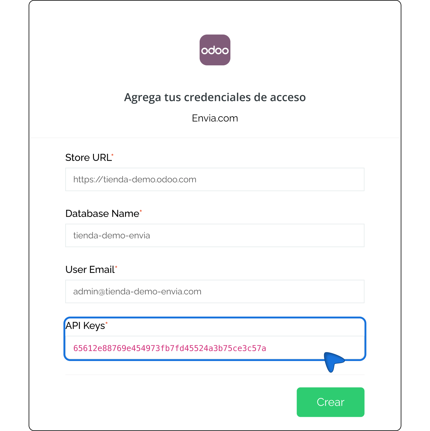 Il gioco è fatto! Il vostro negozio Odoo è ora integrato con envia.com.