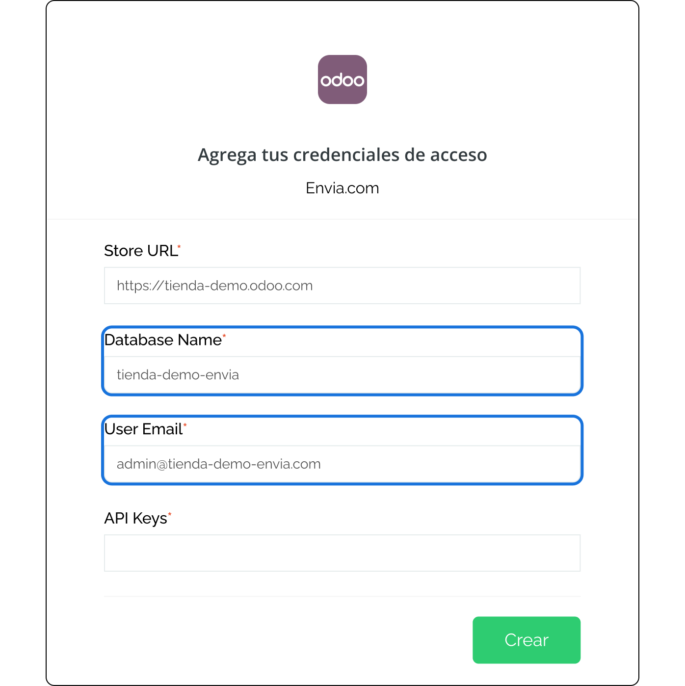 Passi per integrare Odoo da Envia.com