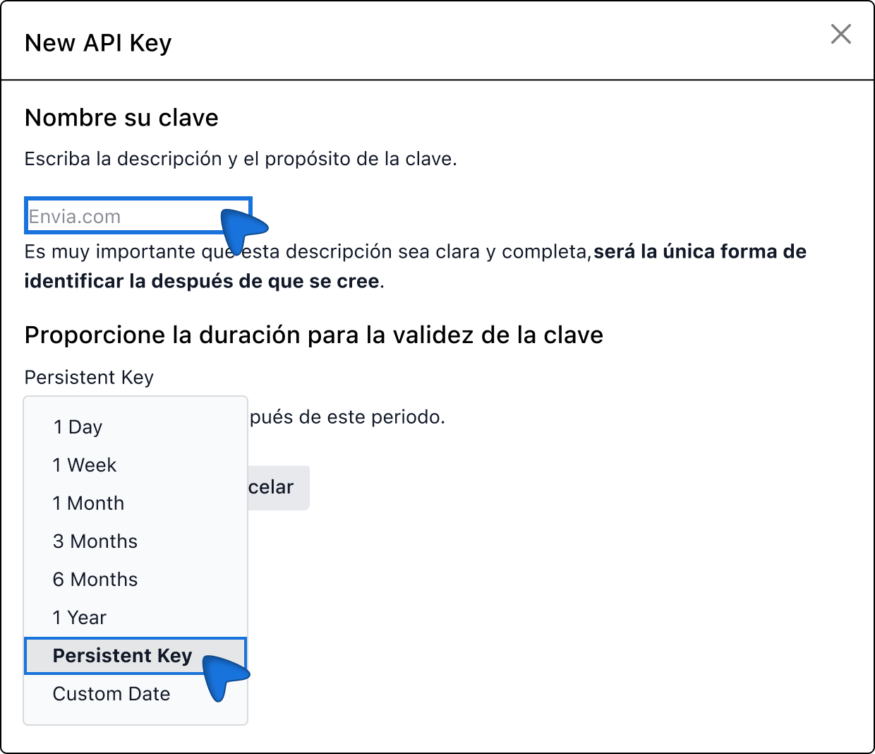 13. Nella durata della chiave, selezionare Chiave persistente e clicca su Generare la chiave.