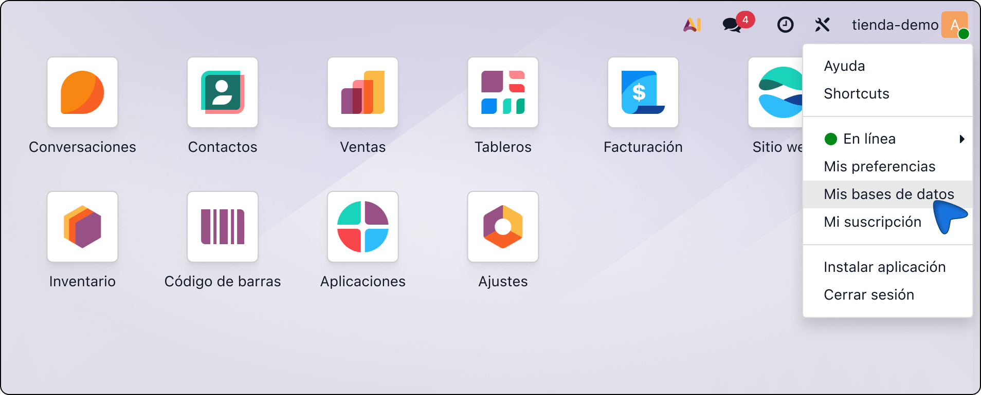 6. Nella dashboard di Odoo, fare clic sull'angolo superiore e selezionare I miei database