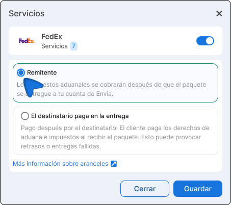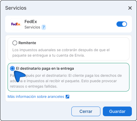 I dazi e le tasse di importazione sono oneri che i Paesi di destinazione applicano ai pacchi internazionali. Ora potete decidere chi li paga per ciascuno dei vostri negozi collegati, in modo indipendente per ogni negozio e in base al vettore utilizzato. Per utilizzare questa funzionalità è necessario avere almeno un negozio collegato in Ecommerce Pro e un vettore internazionale configurato.