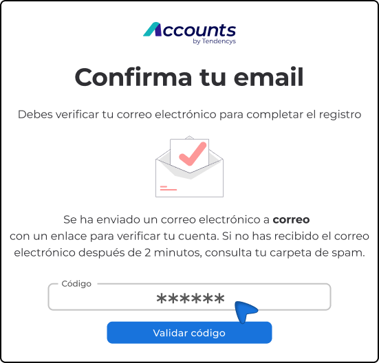 4. Recibirás un código de verificación en tu correo. Ingrésalo y haz clic en Validar código.
