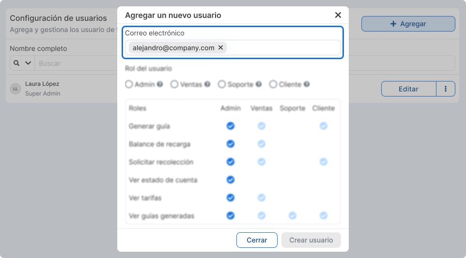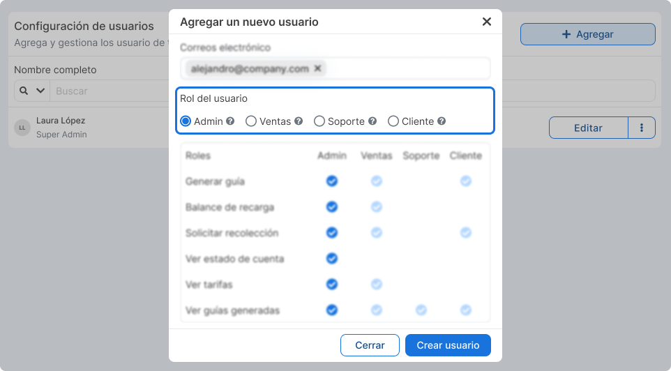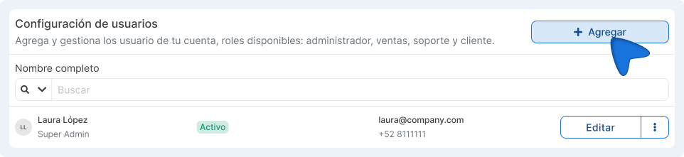4. Atribua uma função: Administrador, Vendas, cliente ou Suporte.